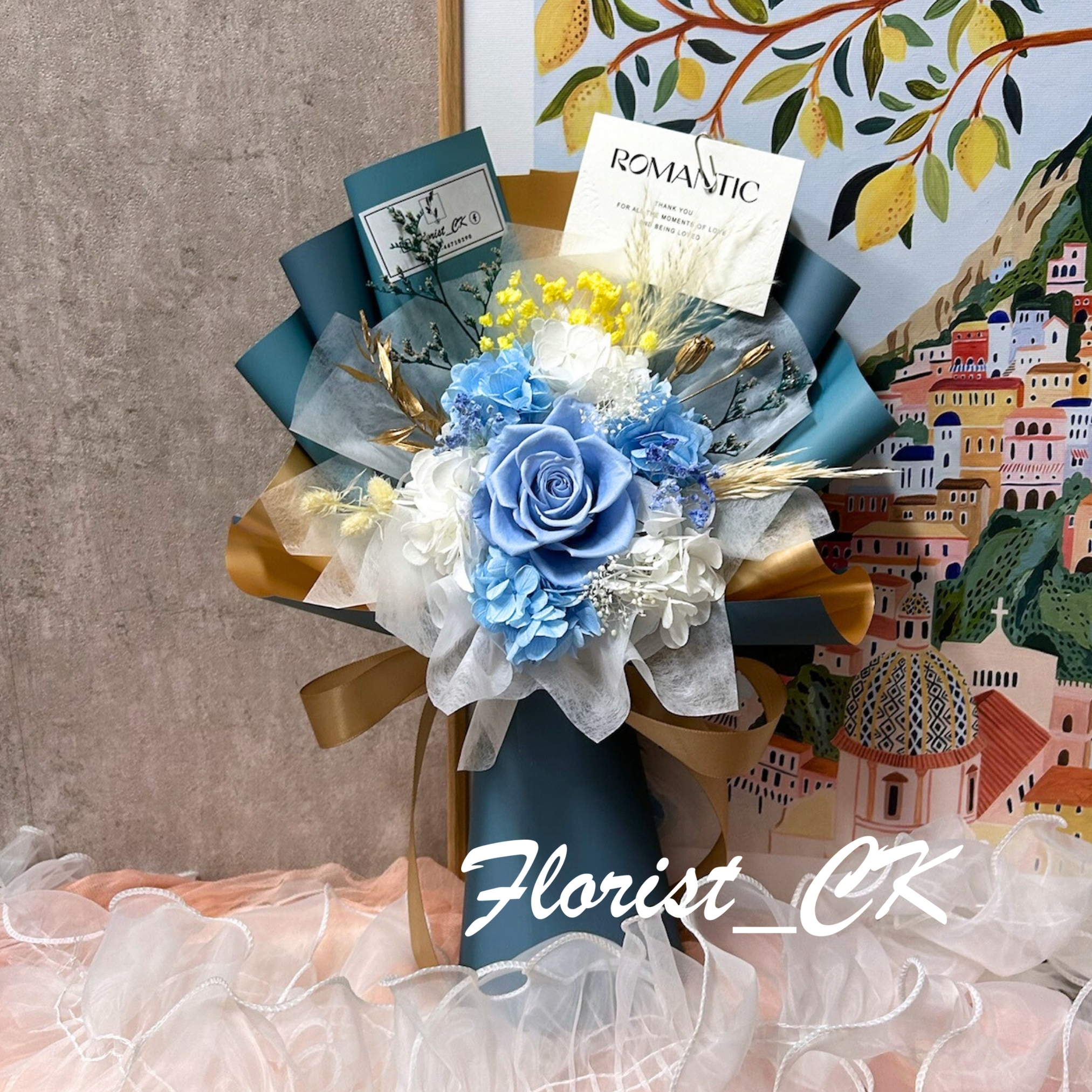 常規花束(追求、生日、求婚、週年紀念、情人節等) 💟 帶有字句的心意卡或插牌(款式隨機送出),挺身花袋 畢業花束 💟 附送畢業插牌,小四方帽,挺身花袋 -------------------------------- 📣 請提前 3 日預訂,如急單請按右下角 Whatsapp 我們查詢 (不接來電) ✅ 如需代寫心意卡請備註,否則我們會為客人選擇合適的插牌或帶有字句的卡片。 -------------------------------- 永生花又稱保鮮花 💐 100% 天然真花,經過特殊加工後,花朵可以保留鮮花原有的外貌和質感 🌹 只要保存環境良好,可存放一年或以上 ✅ Tip:不用擔心花束重量,雖然是由鮮花加工而成,但不需要用水養著,所以會很輕身的 ✅